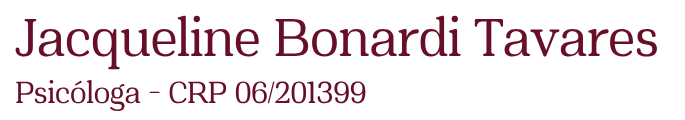Sou Jacqueline Bonardi Tavares, psicóloga (CRP 06/201399) formada pela Universidade Municipal de São Caetano do Sul.