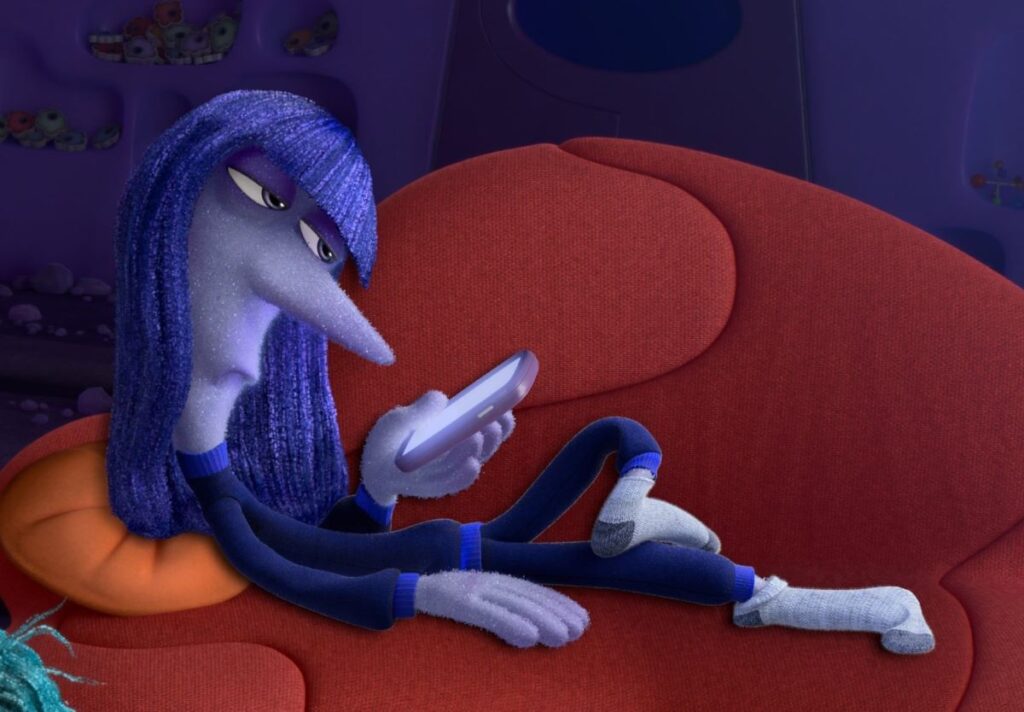 O personagem do tédio, todo monocromático, expressão facial neutra e em constante uso do celular reflete a falta de energia e desânimo tão característicos desse afeto. A origem da palavra tédio remonta à palavra grega akedia, vinda de kedos (“importar-se com”), ou seja, “não importar-se com”. O tédio tem relação com o desprazer, a indiferença, a monotonia. Ele vem da falta de significado e do vazio. Ele pode surgir nas atividades mais rotineiras. A percepção da passagem do tempo, a procrastinação da execução de certas atividades (ou de tomadas de decisão) e uma maior liberdade de escolha do que fazer com o tempo, são componentes interessantes quando se discute sobre a experiência de sentir tédio. O que te deixa entediado? As redes sociais tem sido usadas como uma fuga de momentos desinteressantes do dia-a-dia? A grande quantidade de informações e estímulos presentes nas redes de certa maneira ajudariam a preencher o vazio do tédio? Referência Gradin, Adriana Meyer Barbuda. Tédio e apatia como sintomas: manejos na clínica psicanalítica. 2018. 209 f. Dissertação (Mestrado em Psicologia: Psicologia Clínica) – Programa de Estudos Pós-Graduados em Psicologia: Psicologia Clínica, Pontifícia Universidade Católica de São Paulo, São Paulo, 2018.